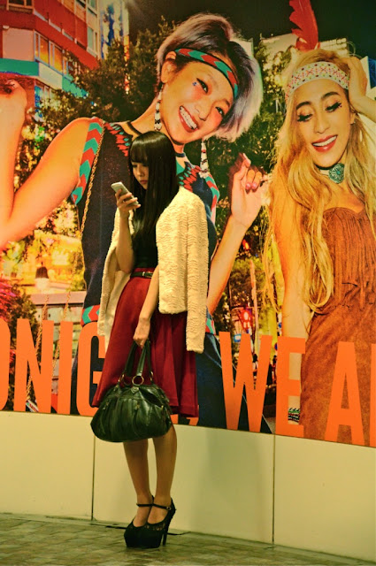 Chic met een twist, niemand volgt voorgekauwde trends. Ik zie super hippe meisjes, maar ook barbiepoppen en zelfs Hollie Hobbies. Voor de meisjes is kawaii vaak de maatstaf, het moet schattig zijn. Ook de jongens zijn behoorlijk creatief. Een van de modieuze jongens die ik fotografeer, nodigt ons uit in zijn shop met origineel bewerkte tweedehandskledij, want ook de boetieks zijn stuk voor stuk verrassend.